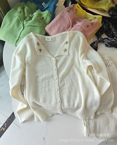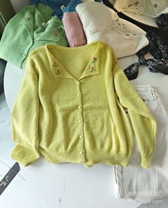 2025早秋新款刺绣花马海毛针织开衫女温柔风纯色软糯毛衣外套H18