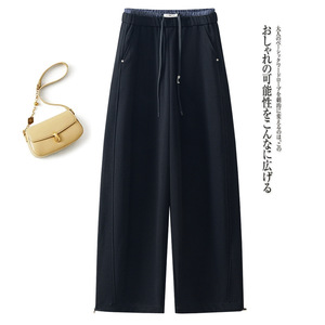 灰色松紧腰直筒卫裤女秋季2025新款高腰垂感宽松弯刀裤运动休闲裤