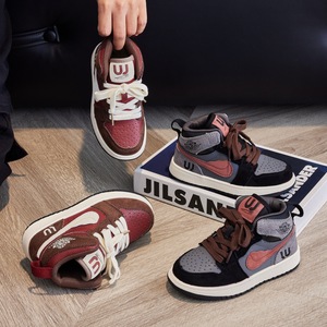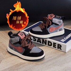 儿童高帮板鞋2025秋冬新款男童运动鞋女童加绒休闲鞋中大童篮球鞋