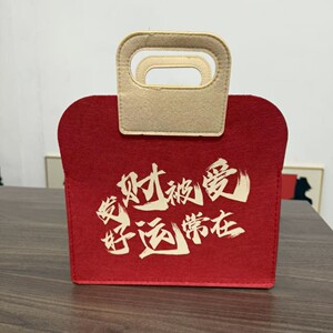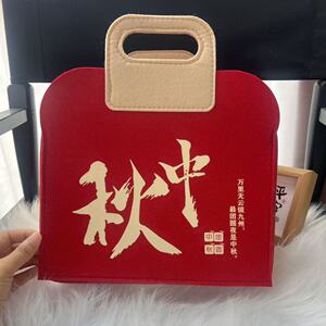 中秋节日礼品袋新年国潮中国红毛毡手提袋伴手礼托特包大容量