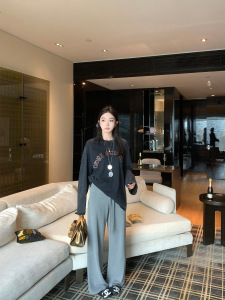 垂感直筒休闲阔腿裤女大码秋季新款胖妹妹高腰宽松显瘦九分工装裤