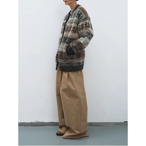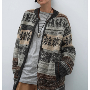 24新品羊驼羊毛 多层图案费尔岛提花开衫毛衣外套