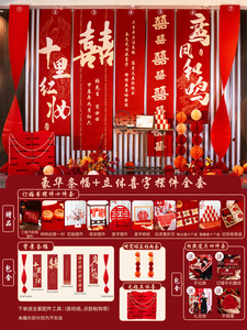 才子佳人豪华条幅【毛毡大喜字摆件全套】