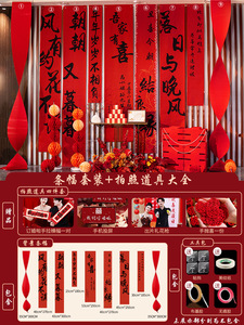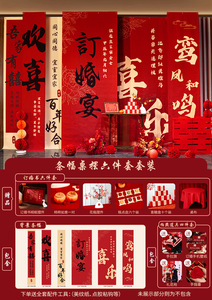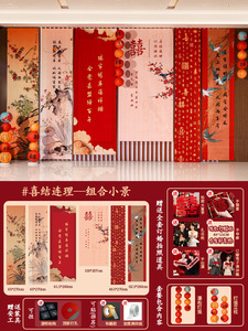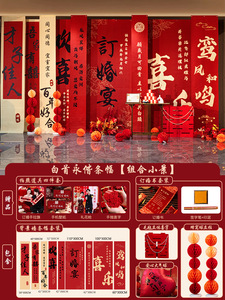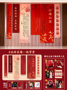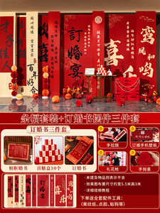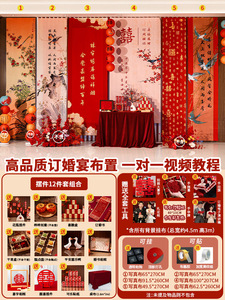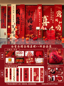 订婚挂布条幅新中式订婚宴布置装饰品氛围感背景摆台装饰全套