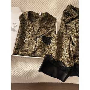 轻奢高级感豹纹冰丝睡衣女春秋款2025新款缎面长袖长裤套装家居服