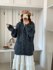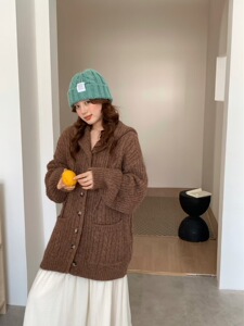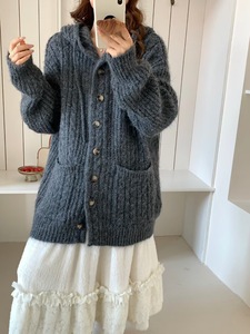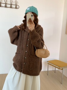 欧美风慵懒连帽开衫毛衣女2025秋冬新款宽松休闲复古麻花针织外套