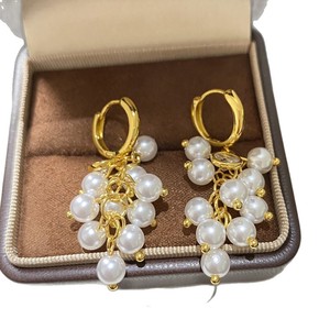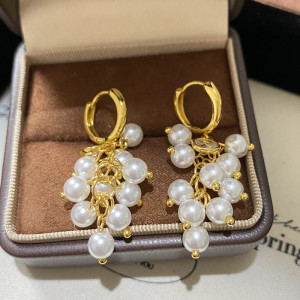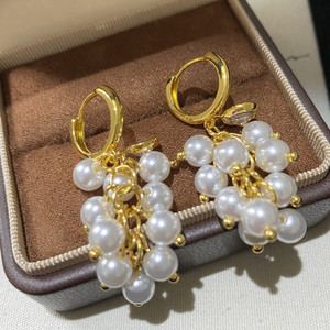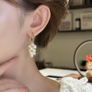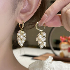法式葡萄串流苏珍珠耳环独特气质优雅精致小众通勤百搭耳饰批发
