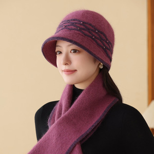 新款时尚中老年人兔毛帽子女冬季妈妈盆帽保暖防寒加绒加厚针织帽