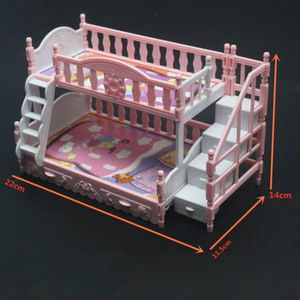 迷你娃娃屋双层床家具上下铺卧室场景微缩模型儿童过家家娃娃配件