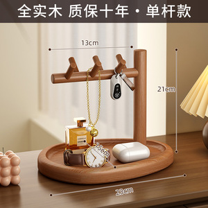 玄关钥匙置物架小型实木挂件架客厅杂物整理神器桌面多功能收纳架