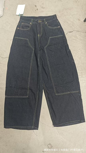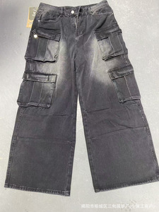 工装多口袋设计牛仔裤男做旧洗水复古日系休闲裤子国潮宽松长裤