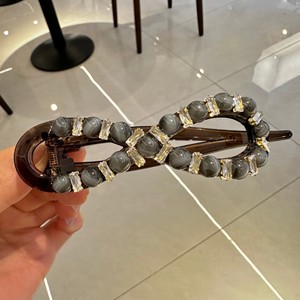 韩国新品闪钻盘发一字发夹高级感蝴蝶结扭扭夹子法式慵懒鲨鱼扣夹