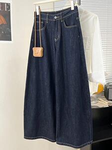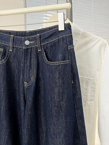 美式复古蓝色直筒宽松牛仔裤女秋秋新款设计感小众高腰显瘦阔腿裤