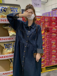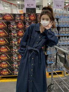 法式复古牛仔连衣裙春秋2025时尚中长款新款收腰气质显瘦衬衫