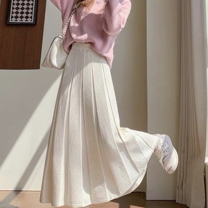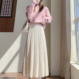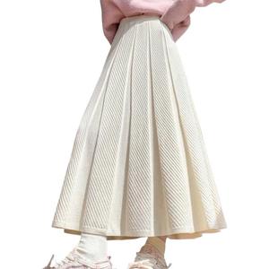 秋冬加厚大摆针织长裙子高腰显瘦a字百褶半裙肌理感伞裙半身裙潮