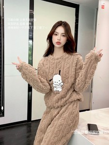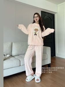 卡通猫珊瑚绒睡衣女2025冬季新款加绒加厚家居服冬季保暖长袖套装