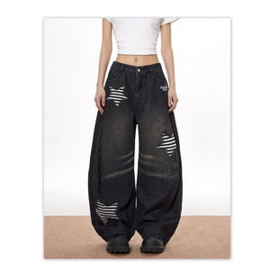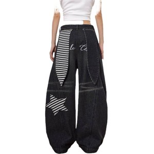 梁拌泡菜 1美式hiphop牛仔裤设计感弯刀裤宽松阔腿跳舞兔子裤子女