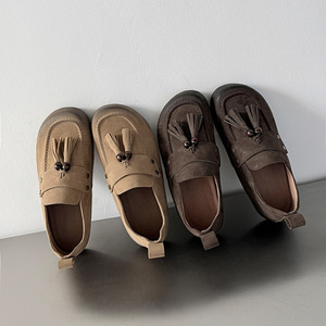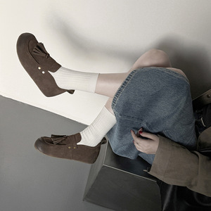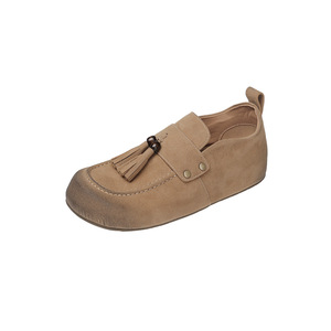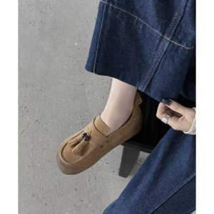 云软舒适英伦风流苏勃肯鞋2025秋厚底低跟圆头牛反绒面休闲单鞋女