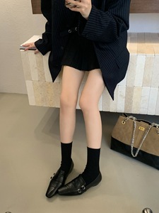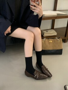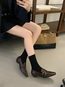欧美方头深口单鞋女2025秋布洛克低跟时装鞋皮带扣气质青年女鞋潮