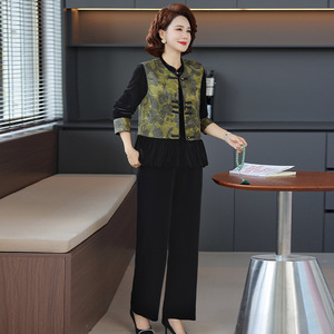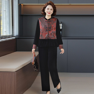 批发新中式妈妈秋装丝绒套装洋气中老年女装马甲国风直筒裤三件套