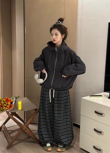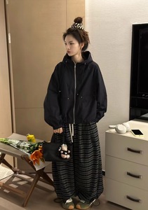 2025韩版宽松简约冲锋衣女秋季新款连帽抽绳拉链休闲百搭外套潮