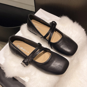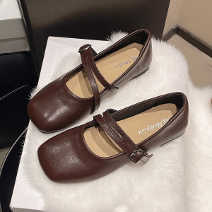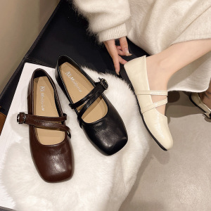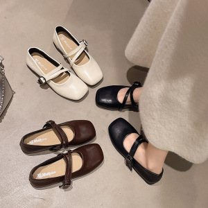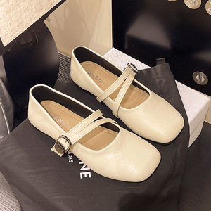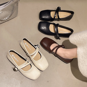 气质方头平底单鞋女2025新款春秋法式复古玛丽珍小皮鞋浅口通勤鞋