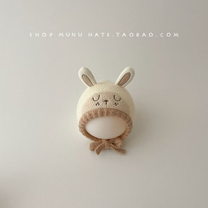婴儿帽子冬天包头帽小月龄宝宝可爱卡通毛绒护耳帽加厚保暖针织帽