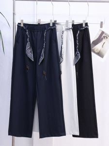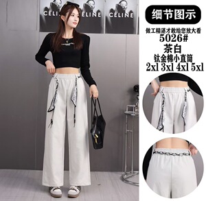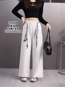 2025早秋新款钛金棉阔腿裤松紧腰休闲女裤小直筒裤子配丝巾