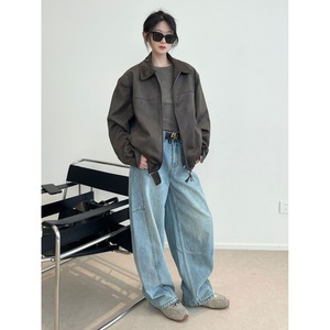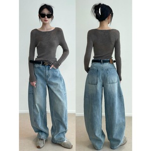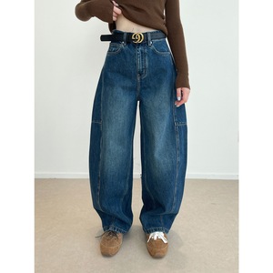 泽黛佳伊100长绒棉 时髦先锋轻解构分割切线宽松弧线茧型牛仔裤秋