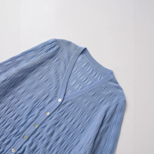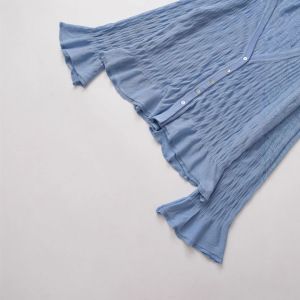 E4TY-26257褶皱针织外套2025秋季新款温柔风V领修身喇叭袖开衫