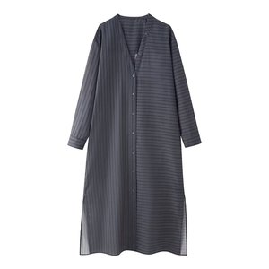 跨境女装批发 2025秋季新款女装欧美风时尚简约条纹宽松长款外套
