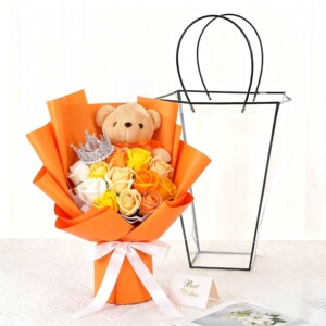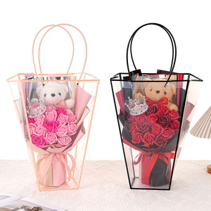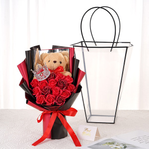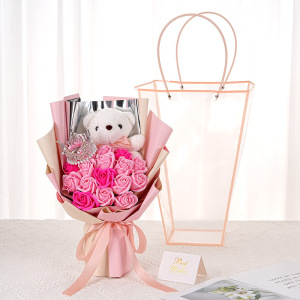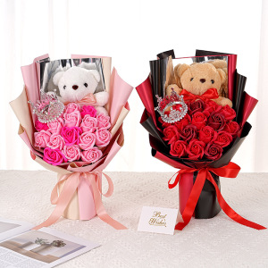 永生花玫瑰花束泰迪熊小熊新款外贸情人节礼物玩偶玫瑰香皂大花束