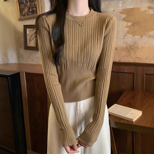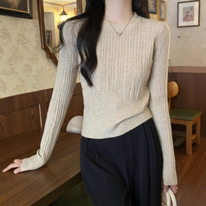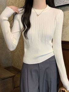 别致修身圆领打底衫女秋冬新款高级感毛衣内搭长袖针织衫上衣批发