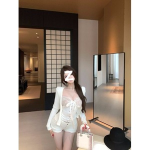 巧克少女纯欲风蝴蝶结蕾丝拼接吊带背心女夏季防晒长袖开衫单套装