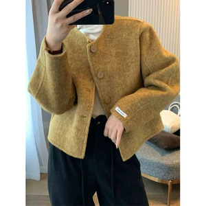 气质双面羊绒大衣女短款2025新款单排扣双面呢圆领小香风毛呢外套