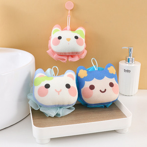 卡通猫浴球家用搓澡起泡儿童浴花不散花加大柔软浴花洗澡巾二合一