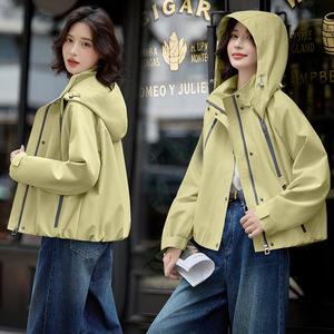 时尚工装夹克冲锋衣女2025秋装新款连帽百搭小个子短外套WW2533