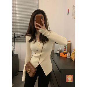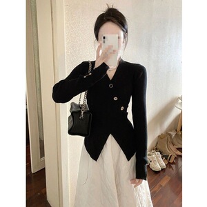 2025年秋季新款黑色v领别致独特小众上衣针织打底衫时尚内搭毛衣