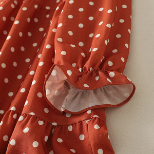 日韩现货文艺波点长袖连衣裙女春季2025新款宽松减龄拼接长裙