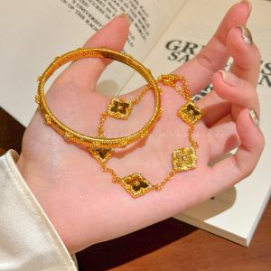 真金电镀滴油菱形花朵锆石手链轻奢高级感手环时尚精致气质手饰女