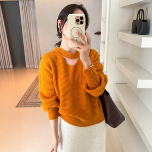 镂空挂脖灯笼袖羊毛针织衫女欧洲站2025秋装新款欧货女装打底衫潮