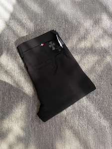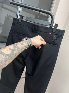 新款后兜克罗十字架贴皮商务西裤网红同款休闲修身小直筒长裤