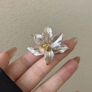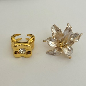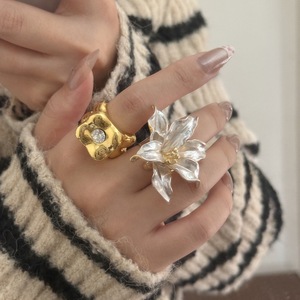 金白撞色滴釉郁金香花朵小香风戒指 INS高级感方形镶锆石宽版指环
