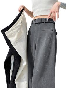 亮片弯刀西装裤女时尚感春秋2025超好看百搭高腰窄版直筒拖地裤子
