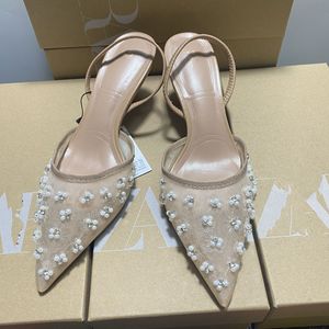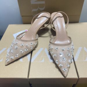 ZA2025新款韩系精致感气质尖头网纱水钻扣包头后空凉鞋女半拖