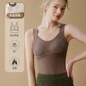 无痕保暖背心女款带胸垫免穿文胸加厚双重提拉防下垂贴身打底上衣