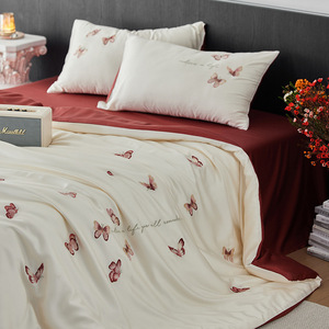A类60s兰精天丝四件套刺绣亲肤裸睡床单被套凉感丝滑夏季床品