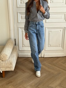 欧美跨境外贸2025春秋新款复古宽松直筒百搭小众后腰豹纹牛仔裤女