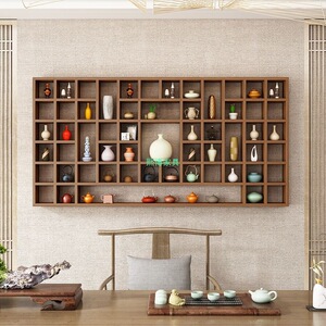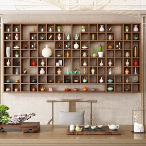 实木壁挂格子架博古置物架收纳架茶壶展示架书架货架饰品架茶杯架