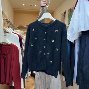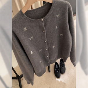 毛衣外套2025秋软糯灰色刺绣针织开衫百搭时尚洋气显瘦减龄